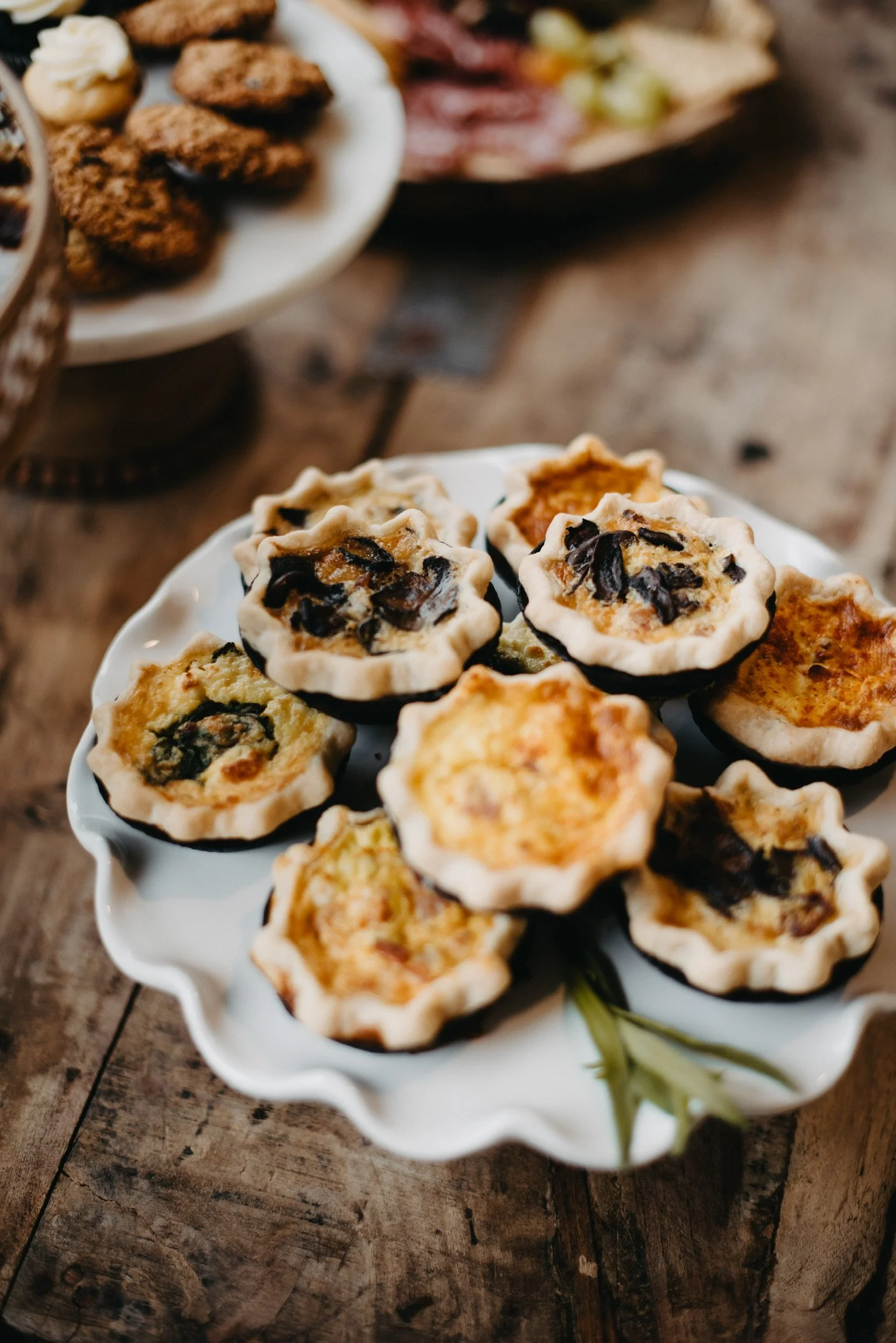 Quiche: (2)Ham & Cheddar (2) Sweet Potato, Sage, Caramelized Onion, & Goat Cheese